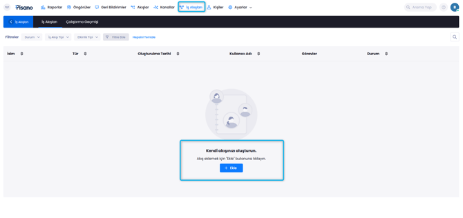 - İş akışlarına gelip Kendi Akışınızı Oluşturmak için "Ekle"ye basın.