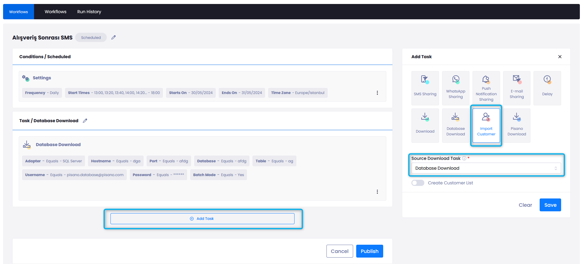 - After saving, click Add Task again, select Import Customer by choosing your file.