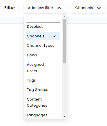 In the "Filter" section, add the "Channels" filter and select the name of the channel you want to report.