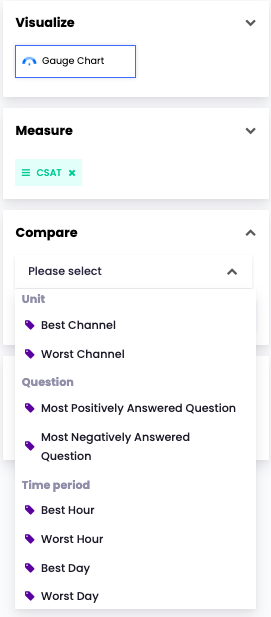 In the gauge chart, the metrics such as CSAT and NPS can be displayed.