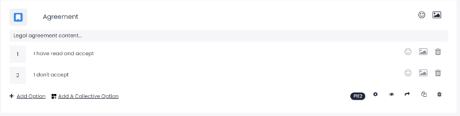 - In the Agreement question, you can create a question for the customer to read and approve the agreement by placing the contract text in the additional link.