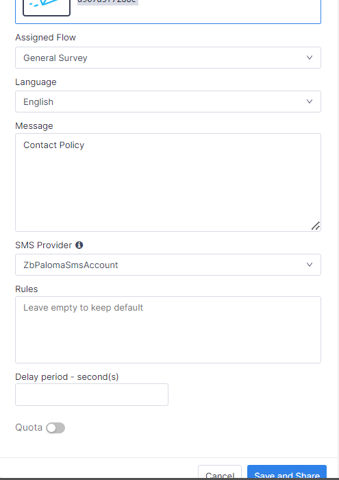 Select Edit Campaign to assign the relevant flow, default language and message which will be iterated to the customer - click Save and Share.