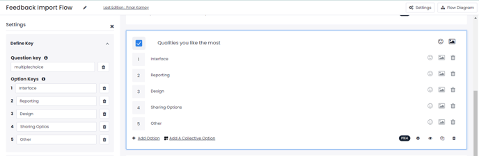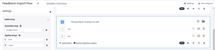First, you need to define the questions related to the feedback you want to transfer by creating a Flow in Pisano. (For details on how to create a flow: How To Create a Flow in Pisano? )