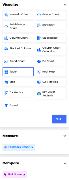 - Select the data you wish to measure from Measure, such as Feedback Count.