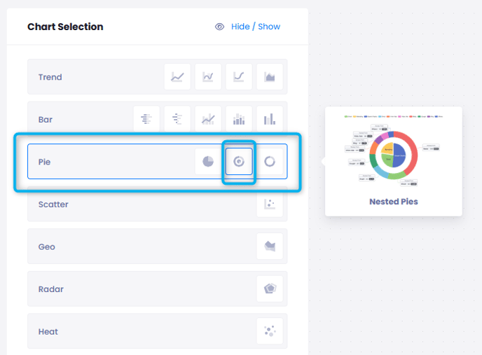 - Select Pie Chart > Nested Pies from Chart Selection.