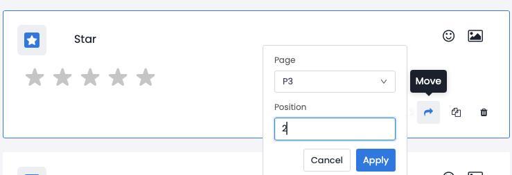 Questions can be moved to a target location within the same page or on a different page via the "Move" button located below them. During the move process, the user will be warned if the question has a trigger. No new trigger is created during the process; if an existing trigger exists, it will be automatically removed upon user approval, completing the move.