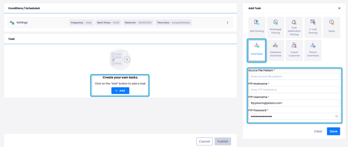 - Enter the Source File Template and FTP server, FTP Username and password, and save.