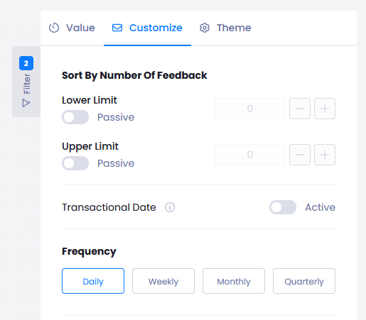 - You can add limits to your data using the Customize menu, or choose the frequency of the data shown in the chart.