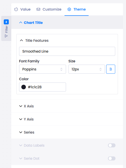 - You can change the appearance of your chart with the Theme menu.