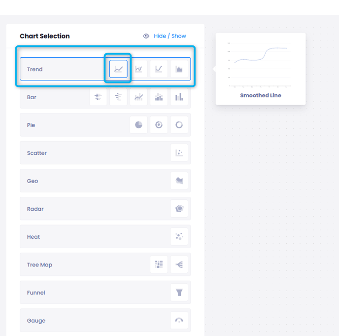- Select Trend > Smoothed Line from Chart Selection.