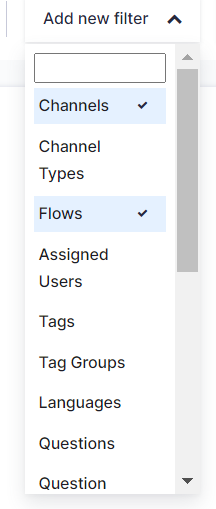 - By clicking the Add New Filter button, add the "Flows" and "Tags" filters and select the desired flow.