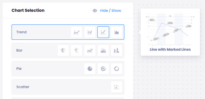 Line with Marked Lines Chart allows you to analyse and compare your data using X and Y axis for a selected time period