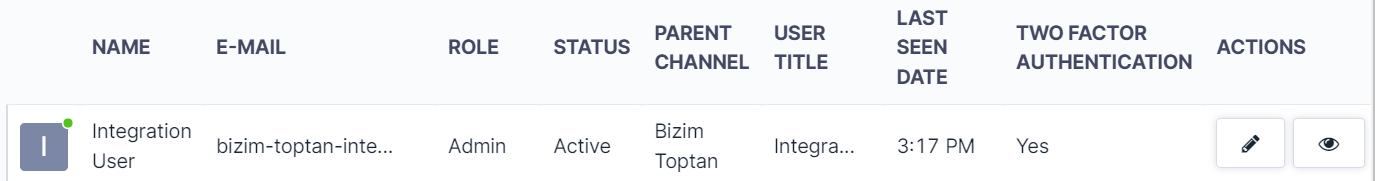 When you click on the "Users" tab in the management module, you can see the roles of the users, whether they are active or passive, the channel they are connected to and the last seen date.