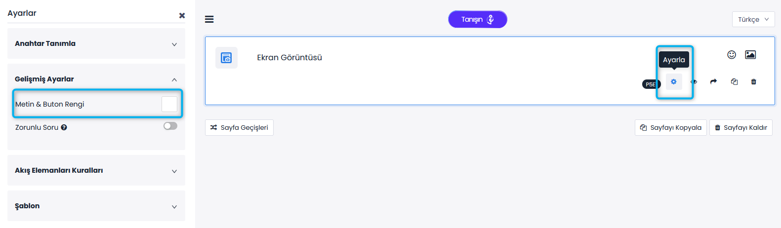 Gelişmiş Ayarlar: Sorunun işleyişi ile ilgili ayarları yaptığınız alandır.