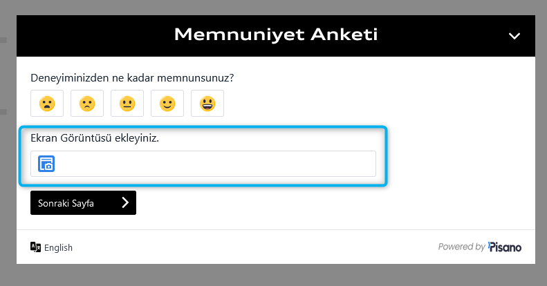 Web Widget kanallarında, anketin sorulduğu sayfadan ekran görüntüsü almaya olasılık sağlayan soru tipidir.