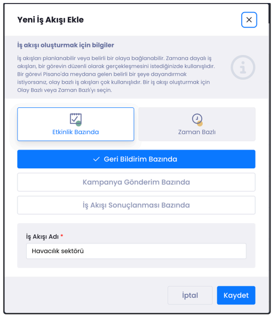 İş Akışı Ekle butonuna tıkladığınızda sizin için iş akışı adı tanımlı olarak gelecektir.