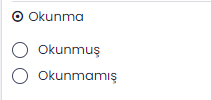 Chatbot için kullanılan bir özelliktir. Geri bildirimin ilgili kişi (atanan kişi) tarafından okunup okunmadığına yönelik filtrelendirme yapabiliriz:
