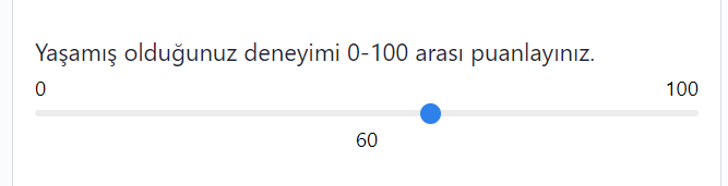 Müşterilerinize 0-100 arasından kaydırmalı olarak cevap verebilme imkanı sunan soru türüdür.