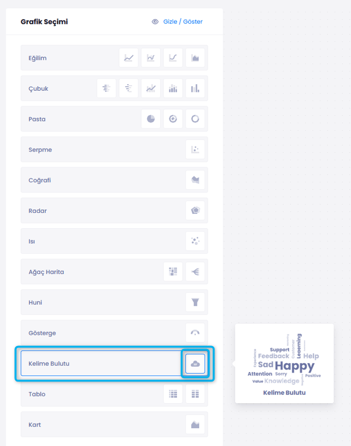 - Grafik Seçimi'nden Kelime Bulutu'nu seçin.