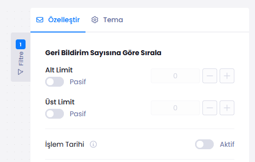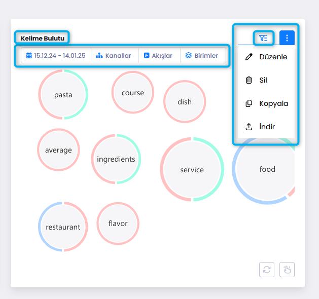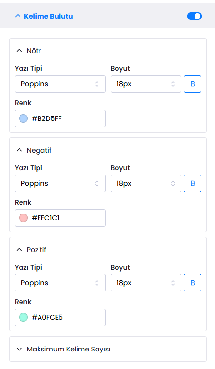 - Kelime Bulutu butonu, Negatif, Pozitif ve Nötr girişlerin görünümünü ayarlamanızı sağlar.