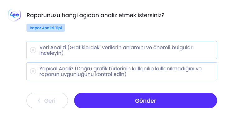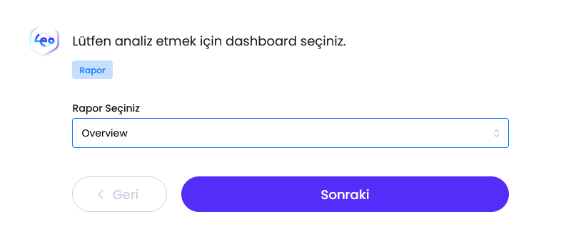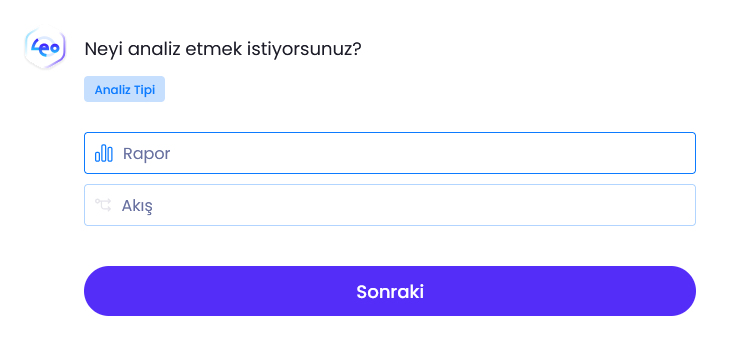 Leo arayüzünü açtıktan sonra kullanıcı akış veya rapor analizini seçebilir.