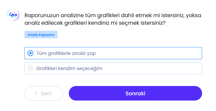 Rapor seçildikten sonra, bu rapor içindeki tüm grafiklere mi yoksa sadece belirli grafiklere mi inceleme yapılacağı seçilir.