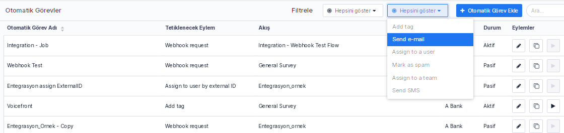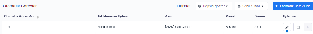 Üzerinde değişiklik yapılmak istenen Otomatik Görevin ''Eylemler'' kısmından içerisine girilir.