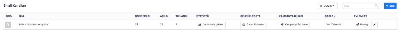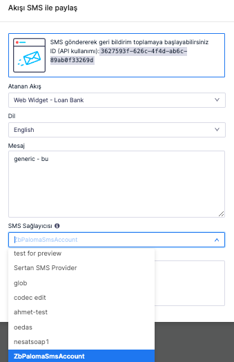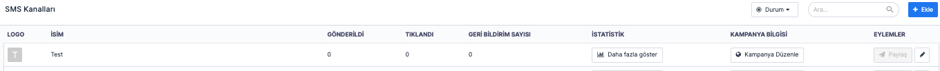 Kanallara geri dönün ve +Ekle ile yeni SMS kanalınızı oluşturabilirsiniz. SMS kanalınızı oluşturduktan sonra, müşterilerinizle paylaşacağınız mesajı, akışı, varsayılan dili Kampanya Düzenle ile belirleyebilirsiniz.