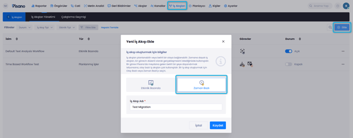 - İş Akışları > Zaman Bazlı olarak bir İş Akışı oluşturun.