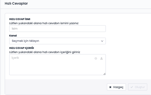zlı Yanıtları Görüntüleyebilme:  "Hızlı Yanıtlar" özelliği, önceden tanımlanmış ve belirlenmiş yanıtların seçilmesine ve hızlı bir şekilde göndermelerine olanak tanır.