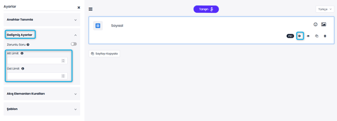 Gelişmiş Ayarlar: Sorunun işleyişi ile ilgili ayarları yaptığınız alandır.