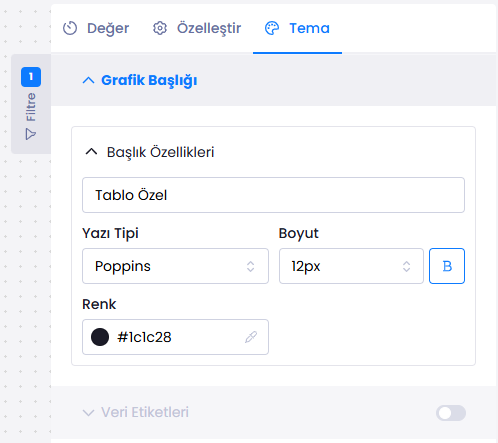 Tema kısmından grafiğinizi font ve boyut olarak özelleştirebilirsiniz.