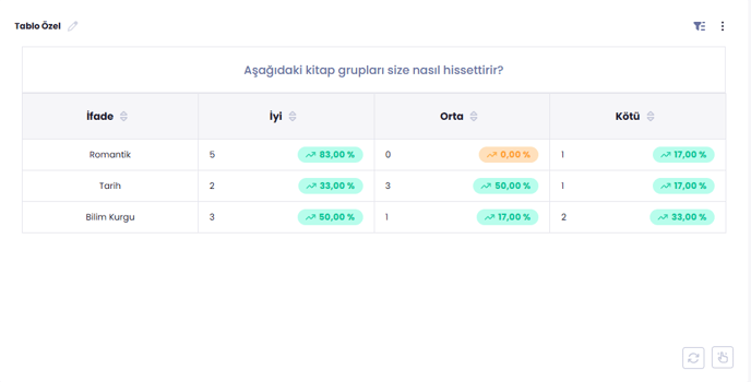 Tablo Özel Grafik, matris sorularının cevaplarını göstermede kullanılır.